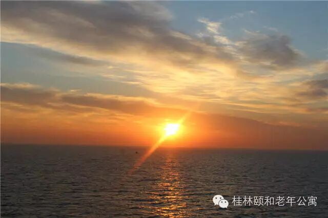 你看,天上霞光万道,红云朵朵,下边万顷波涛,色彩斑斓。